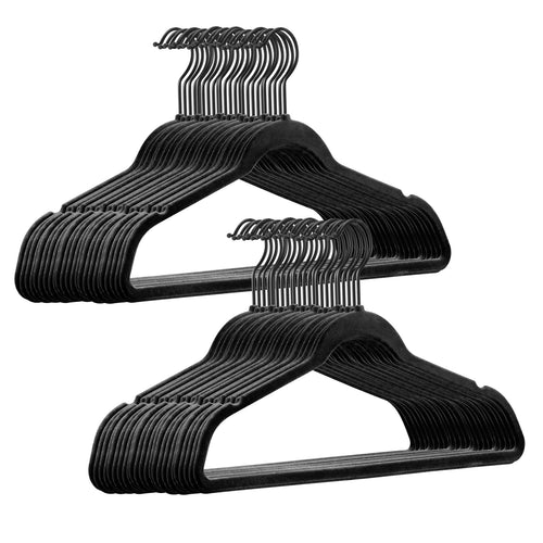 100 Stück Samt / Schwarz Haken Kleiderbügel mit Anti-Rutsch Funktion